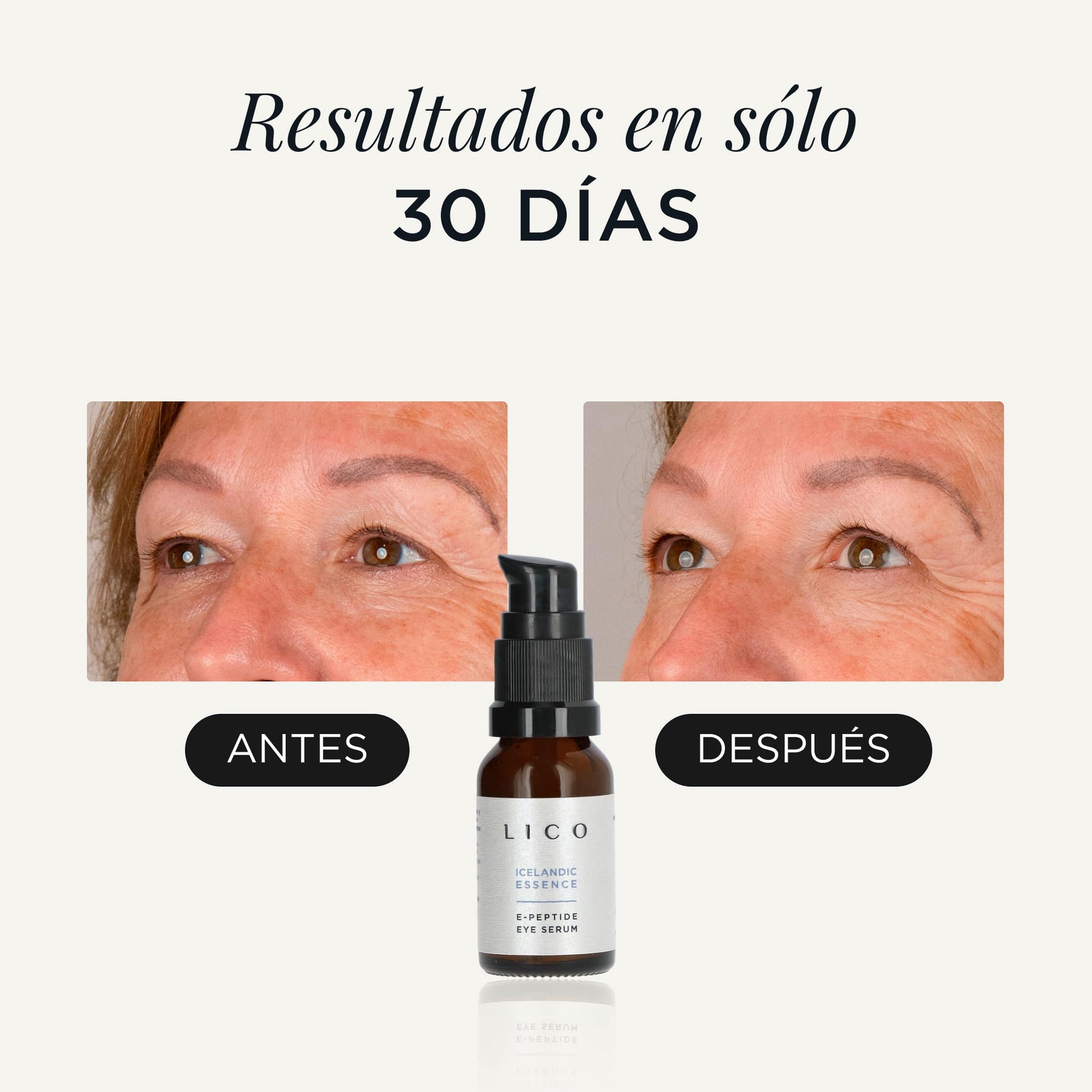 Los primeros cambios se notan en 7-10 días (reducción de hinchazón y mayor luminosidad). Las ojeras y líneas se reducen visiblemente entre la semana 3-4. Para resultados óptimos, recomendamos uso continuo por 8-12 semanas.
